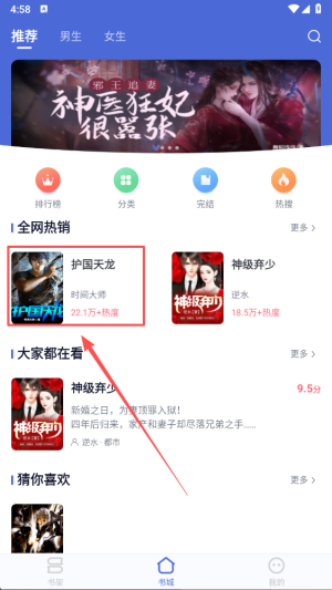 1、启动软件后,在书城界面能浏览到各类小说。
