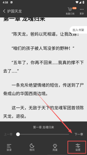 3、点击“设置”选项,进入相关界面,以便调整与个人阅读体验有关的各项参数。