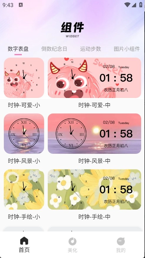2、进入到首页之后可以看到很多的美化资源,包括组件、壁纸以及图标等