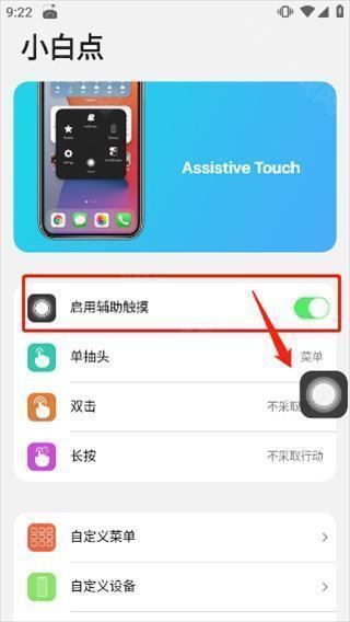 7、权限都打开后点击启动辅助触摸,即可启动“小白点”;