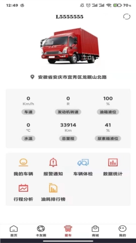 输入车辆相关信息并完成绑定后,出行前可随时查看车辆状态,监控车辆运行情况,及时掌握车辆的工作时间和行驶里程。即时的。