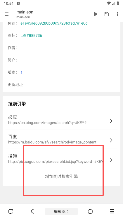 6、可以看到图片搜索所提供的引擎,在这里点击“增加”就能同时使用多个搜索引擎了