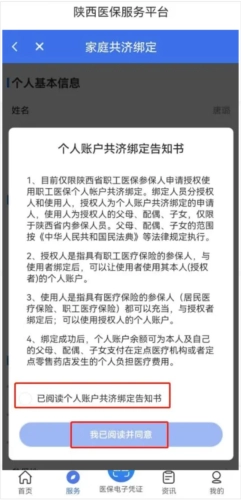 3、进入页面,仔细阅读《个人账户共济绑定告知书》,阅读完成后勾选【已阅读个人账户共济绑定告知书】并点击【我已阅读并同意】