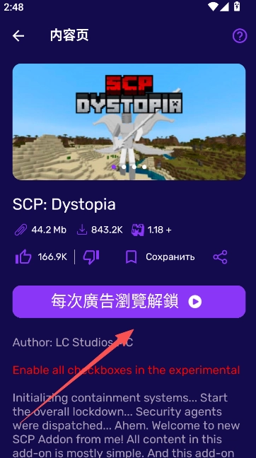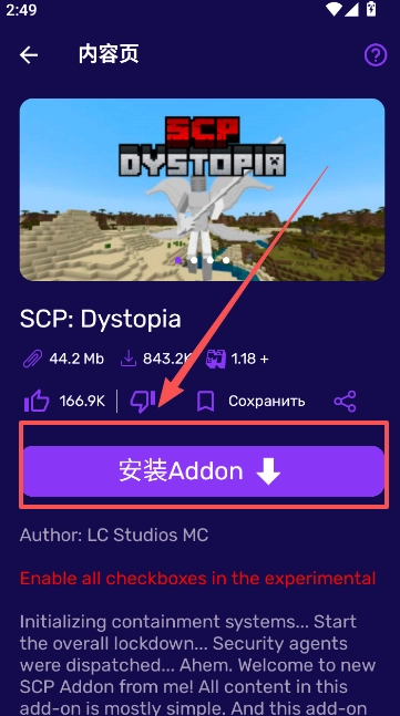 确保您的Minecraft PE版本等于或高于所选mod所需的版本。
