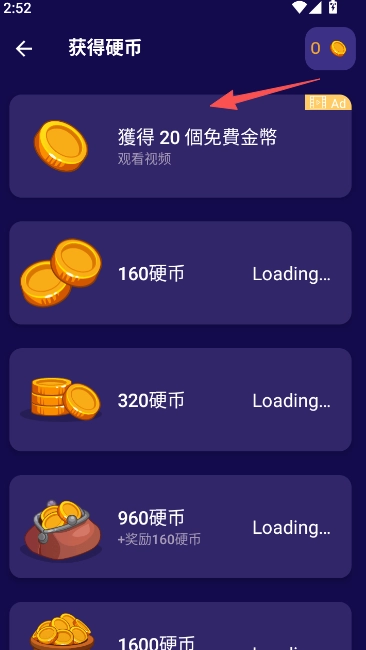 2、想要快速获得硬币,最直接方式就是观看广告一定数量。