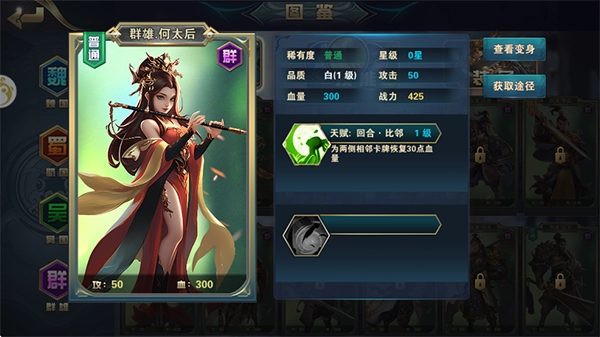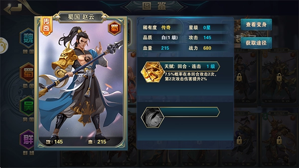 铜雀三国最新版本是一款以三国时代为背景的策略卡牌游戏。在游戏里,玩家将穿越回三国时期,化身为一方主公,需要招揽众多知名武将,尽情施展自己的策略才能。这里有超多考验脑力的玩法等待你来探索,快来体验一番吧!