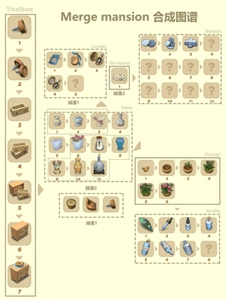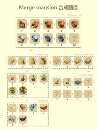 2、解决匹配的谜题时,合并工具、鲜花和其他物品!