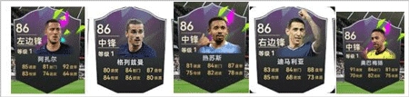 红卡的数值范围是77-82,所以新手引导过后,送的中锋是红卡数值最高的,还算可以。五个前锋中比较推荐里沙利松和莫拉塔吧,不过有了黑卡前锋,红卡都要放冷板凳凉凉了