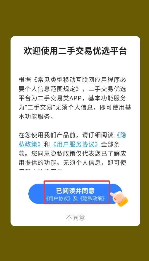 1、首次打开应用程序时,请选择弹窗里的同意按钮,这样才能进入主界面开始使用。