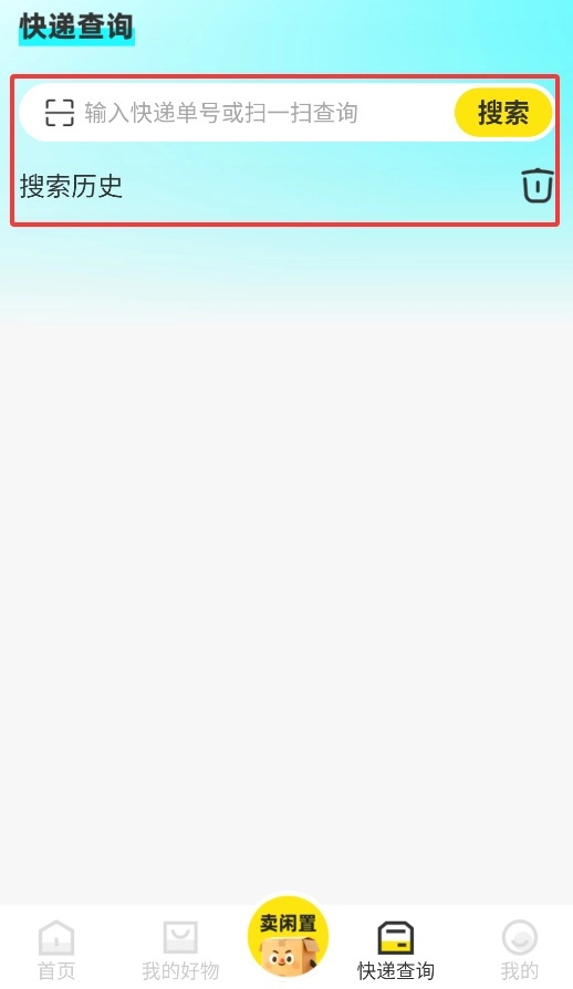 4、进入快递查询页面后,可输入单号或扫码查看物流状态及历史记录。