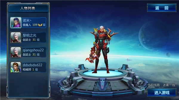 选择线路后进入人物选择界面接下来在左侧选择需要进入游戏的角色,点击右下角进入游戏(只有50级以上的角色才能使用口袋版登录游戏)。