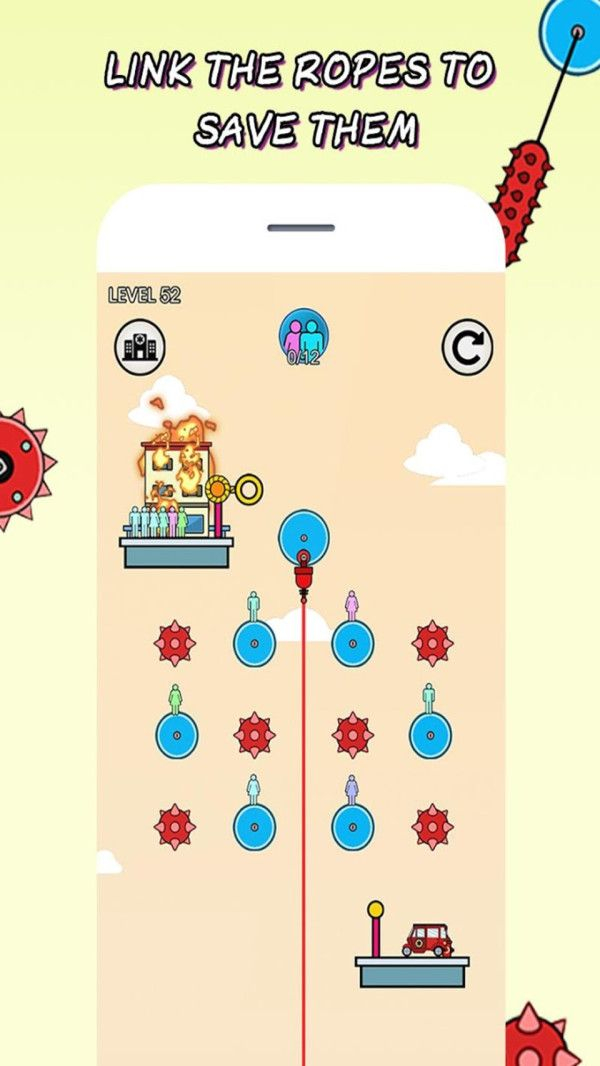 2、玩法十分简单,玩家只需观察地图,找出几个不同的节点,在节点位置架设绳索,搭建出一条通路即可。