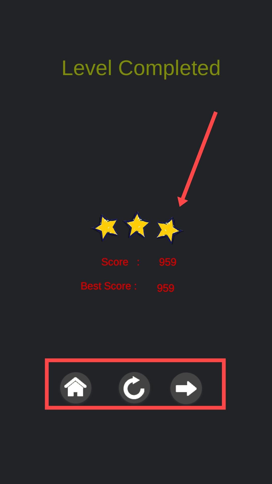3、关卡完成后,依据得分获星级,可点房子回主页、重玩或进下一关,争取更高成绩。