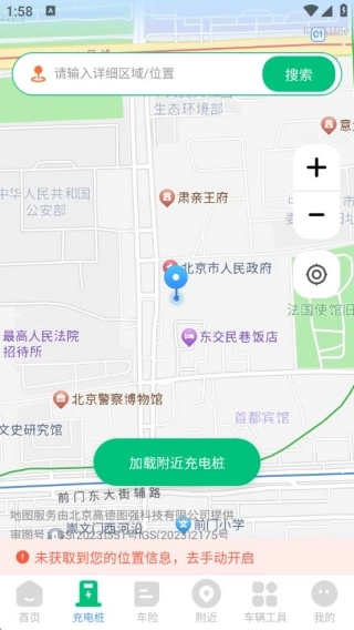 2、输入详细的位置,充电桩信息会以地图的形式呈现。