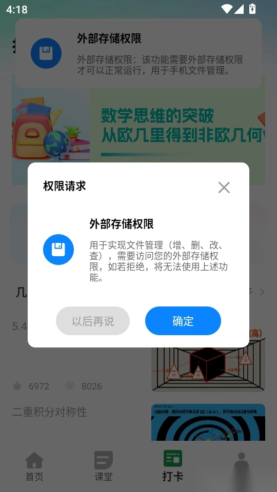 4.然后会出现“权限请求”弹窗提示,点击“确定”按钮进入下一步
