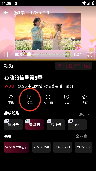 点击投屏即可搜索设备进行投屏